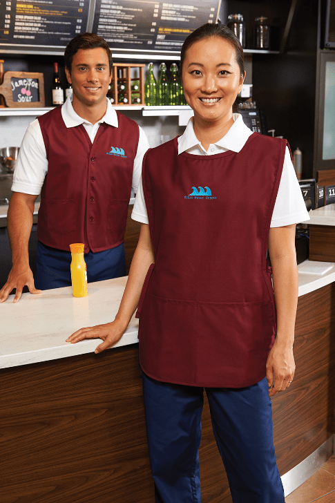 Cobbler apron with two pockets is great for hair stylists; daycares; and retail. The side ties provide easy closure. Add embroidery to your apron; a great way to personalize your uniform and build brand equity.