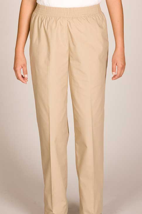 Crafted from a luxurious blend of 65% Polyester and 35% Cotton, weighing a mere 5 oz., this pant effortlessly fuses comfort with sophistication. Slide into effortless elegance as you embrace the pull-on design, complete with a sleek elastic waistband that accentuates your silhouette. Plus, revel in the convenience of two side pockets – an epitome of practicality.