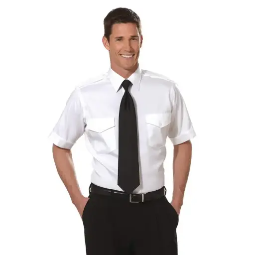 The authentic airline pilot shirt worn by more commercial pilots than any other brand, the Van Heusen Aviator Shirt, is crafted with military weight, wrinkleresistant poplin fabric. True to aviation style it has epaulet tabs on the shoulders, two flap pockets at the chest with a pencil slot, longer tuck in tails, and beveled hem. Designed to give you a comfortable fit and a professional appearance.
